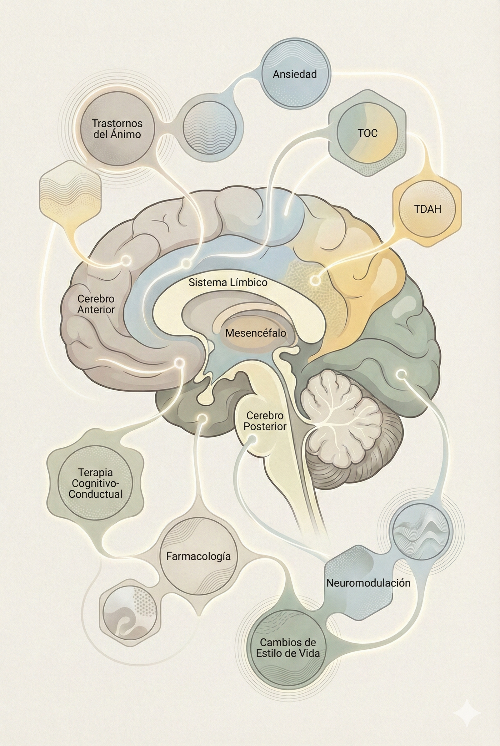 A ello se suma el hecho de que numerosas enfermedades neurológicas se asocian a trastornos psiquiátricos, como alteraciones emocionales, conductuales o de la personalidad secundarias a lesiones cerebrales. En conjunto, estas situaciones ponen de relieve la importancia de una comprensión clínica integrada que tenga en cuenta los distintos aspectos implicados en la expresión del malestar.